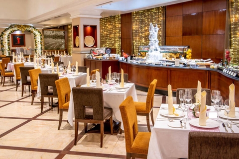 Ngọc Mai Vàng là một nhà hàng buffet lớn và đẳng cấp tại Hà Nội. Nhà hàng có không gian thiết kế đẹp mắt và ấm cúng rất thích hợp cho những bữa ăn vui vẻ cùng gia đình, đồng nghiệp, bạn bè. Điểm hẹn ẩm thực này nằm ở tầng 17 của toà nhà Ruby 44 Lê Ngọc Hân mang tới cho bạn một tầm nhìn tuyệt vời khi thưởng thức bữa ăn. Thực đơn của nhà hàng ngon Hà Nội này cực kỳ phong phú với hàng trăm món ăn hấp dẫn, chất lượng được phục vụ theo tiêu chuẩn quốc tế.