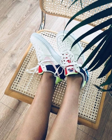 "Tôi cực kỳ yêu thích đôi phiên bản Nike Air Force 1 với phối màu rực rỡ này. Nhìn từ đằng trước, nó trông rất đơn giản với phần lớn là màu trắng, giúp bạn dễ dàng kết hợp với các loại váy hè, nhưng đằng sau lại pha trộn nhiều gam màu sặc sỡ như xanh cobalt, vàng neon, hồng pastel khiến tổng thể set đồ trở nên nổi bật, ấn tượng hơn hẳn" - BTV Shannon Peter.