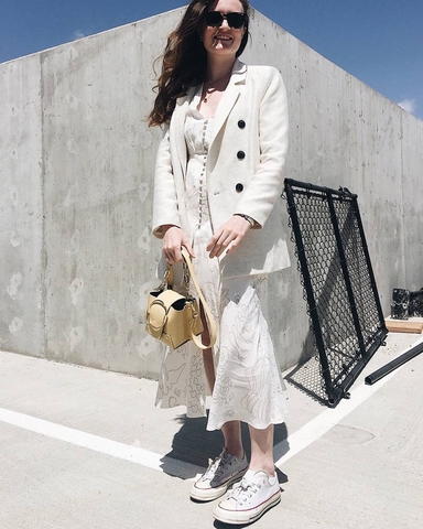 "Tôi thường xuyên mặc váy ngắn và luôn diện chúng với giày Converse cổ điển phiên bản thấp cổ. Không chỉ riêng váy, đôi giày này còn hợp với tất cả mọi thứ trong tủ đồ của tôi. Tôi có thể kết hợp nó với mọi thứ, trong mọi hoàn cảnh, từ đi "quẩy" cho đến đi làm" - BTV Emma Spedding.