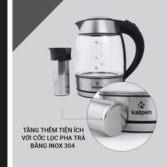 - CHẤT LIỆU CAO CẤP: Ấm đun nước điện cao cấp của Kalpen được thiết kế 100% bằng inox 304 nguyên khối, cùng thủy tinh borosilicat chất lượng cao được in với các dấu tích lít và cốc, đồng thời chống trầy xước và trầy xước