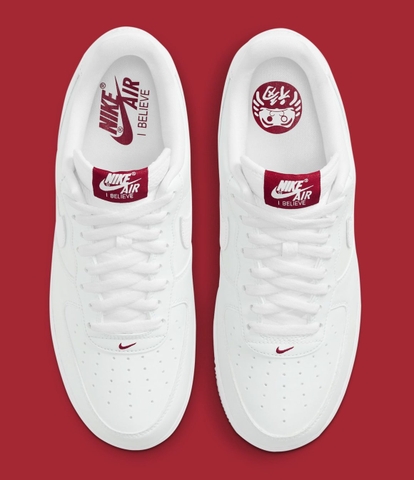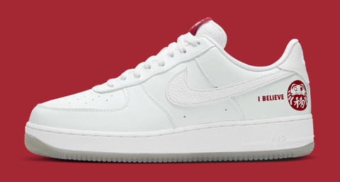 Ra mắt độc quyền tại Nhật Bản vào năm 2002, phiên bản gốc của Air Force 1 Low “I Believe” mang mục đích chào mừng Vòng Chung kết FIFA World Cup lần đầu tiên đăng cai tại đất nước này (đồng tổ chức với Hàn Quốc). Tương tự bản gốc, phối màu này gần như là một phiên bản Air Force 1 Low “Triple White” đại trà, với chút điểm nhấn màu đỏ ở tag lưỡi gà và hình ảnh búp bê Daruma gần gót chân. Tuy vậy, ẩn dưới lớp da sơn trắng đại trà đó là điểm “ăn tiền” của phát hành mới này, một bức artwork cùng mang chủ đề Daruma được thể hiện rất nổi bật, sắc sảo, đi cùng những nét thư pháp Kanji sẽ chỉ lộ ra khi lớp màu trắng phía trên bị tróc đi sau một thời gian sử dụng. Hay hình tượng “I Believe” và búp bê Daruma tiếp tục được nhấn mạnh khi xuất hiện trên phần lót giày, bằng dòng chữ đỏ trên nền lót trắng. Lấy cảm hứng từ bản gốc, phần đế ngoài được làm từ chất liệu translucent trắng đục độc đáo.