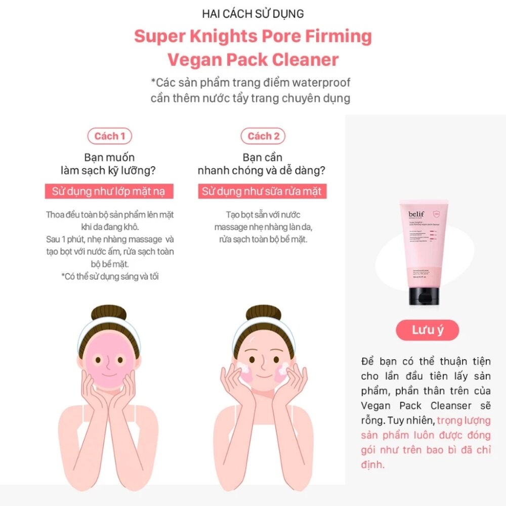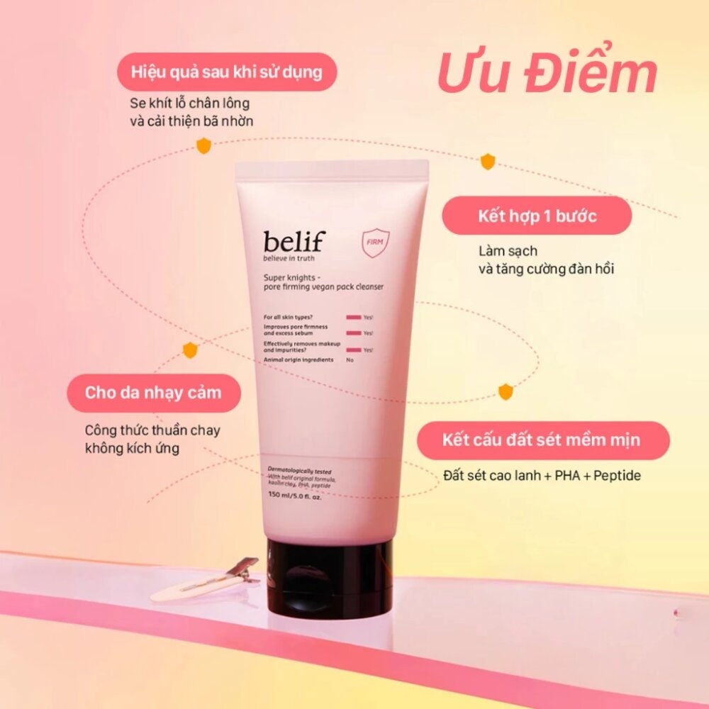 Sữa Rửa Mặt Belif Super Knights Pore Firming Vegan Pack Cleanser 150ml là một sản phẩm nổi bật, mang đến giải pháp đa năng cho làn da. Với công thức chứa BHA, PHA và Peptide, sản phẩm giúp tẩy tế bào chết nhẹ nhàng, kiểm soát bã nhờn và se khít lỗ chân lông chỉ sau một lần sử dụng. Kết cấu kem mềm mịn chuyển đổi thành mặt nạ đất sét khi thoa lên da, và khi nhũ hóa với nước, sản phẩm tạo ra bọt mịn dày, giúp làm sạch sâu và mang lại làn da mềm mại, sạch sẽ. Hương thơm thảo mộc nhẹ nhàng giúp mang lại cảm giác thư giãn, làm cho việc chăm sóc da trở nên thú vị hơn.