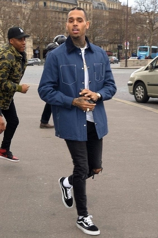 Sự kết hợp Vans Old Skool với áo thun và quần jeans chính là một trong những lựa chọn hợp lý nhất. Với Kany West, Ye sẽ diện một chiếc quần jeans còn Chris Brown sẽ diện một chiếc jeans rách hơn để tăng phần bụi bặm cho Vans. Còn với ASAP Rocky, rapper này sẽ chọn một chiếc quần nỉ hơi phồng để phối với đôi Vans Old Skool của mình, rất chất chơi phải không nào?