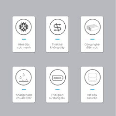 - Nhấn và giữ công tắc trong 2 giây, lời nhắc "bíp" Sẽ vang lên, sản phẩm sẽ vào chế độ thanh lọc sâu, thời gian làm việc là 15 phút và đèn màu xanh - tím sẽ luôn sáng.