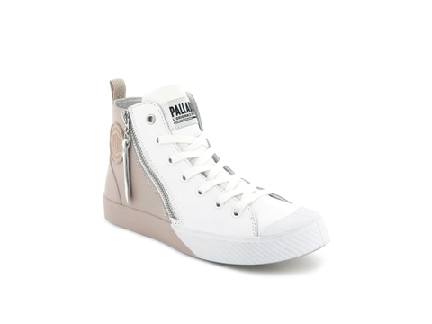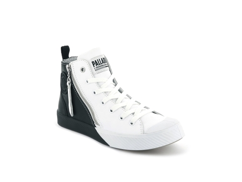 Phải kể đến đầu tiên, một siêu phẩm mang tính “đổi đời” của Palladium mang tên gọi Pallaphonenix Zip 2Tone – một phiên bản đặc biệt dành cho những ai thích sự cá tinh và thích nổi loạn. Có thể dễ dàng nhận thấy sự cải tiến vượt trội về outlook của pack này, đã không còn sử dụng chất liệu canvas quen thuộc mà thay vào đó là một lớp da màu trắng ở phần upper và lớp da màu đen ở phần gót – một sự mix & match hài hòa giữa hai tone màu cơ bản nhưng lại mang đến sức hút mãnh liệt ngày từ cái nhìn đầu tiên. Phải chăng các bạn vẫn đang thắc mắc một chiếc dây kéo khóa bên hông giày? Thì câu trả lời cho bạn đây, chiếc khóa này ngoài nhiệm vụ điểm nhấn đặc biệt trên tổng thể, tăng tính thời trang thì đây cũng là một yếu tố giúp cho thao tác khi mang giày trở nên dễ dàng hơn và nhanh chóng lao đi khám phá những miền đất mới.